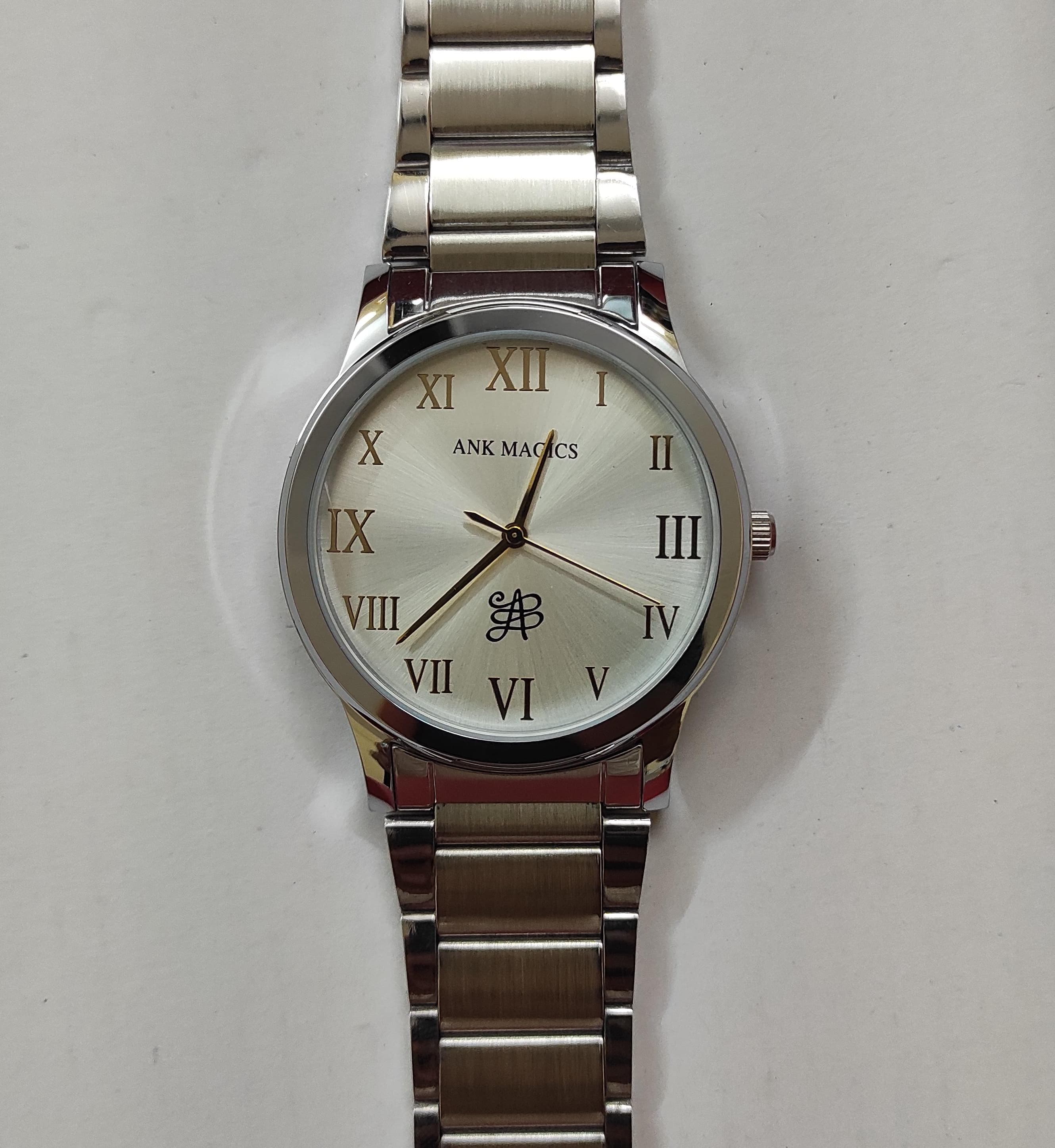 SILVER DIAL 3-6-9-12 BIG SIZE WITH ALL ROMAN DIGITS.